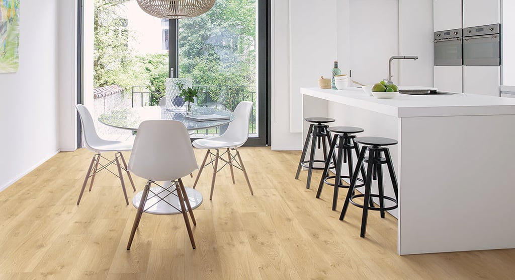 Es un suelo resistente, duradero y de fácil mantenimiento que ofrece una instalación rápida y sin obras, además de una gran variedad de diseños que se adaptan a todos los estilos. También proporciona calidez y confort, un excelente aislamiento térmico y acústico, y una buena relación calidad-precio en comparación con otras opciones.