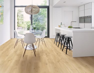 Es un suelo 100% resistencia al agua, con una gran durabilidad, facilidad de limpieza, hace función de aislamiento térmico y acústico, y existen una amplia variedad de diseños. Es una solución ideal para cocinas y baños, para hogares con niños o mascotas donde la mayor preocupación es el agua. Además de ofrecer una instalación sencilla sin necesidad de obras.